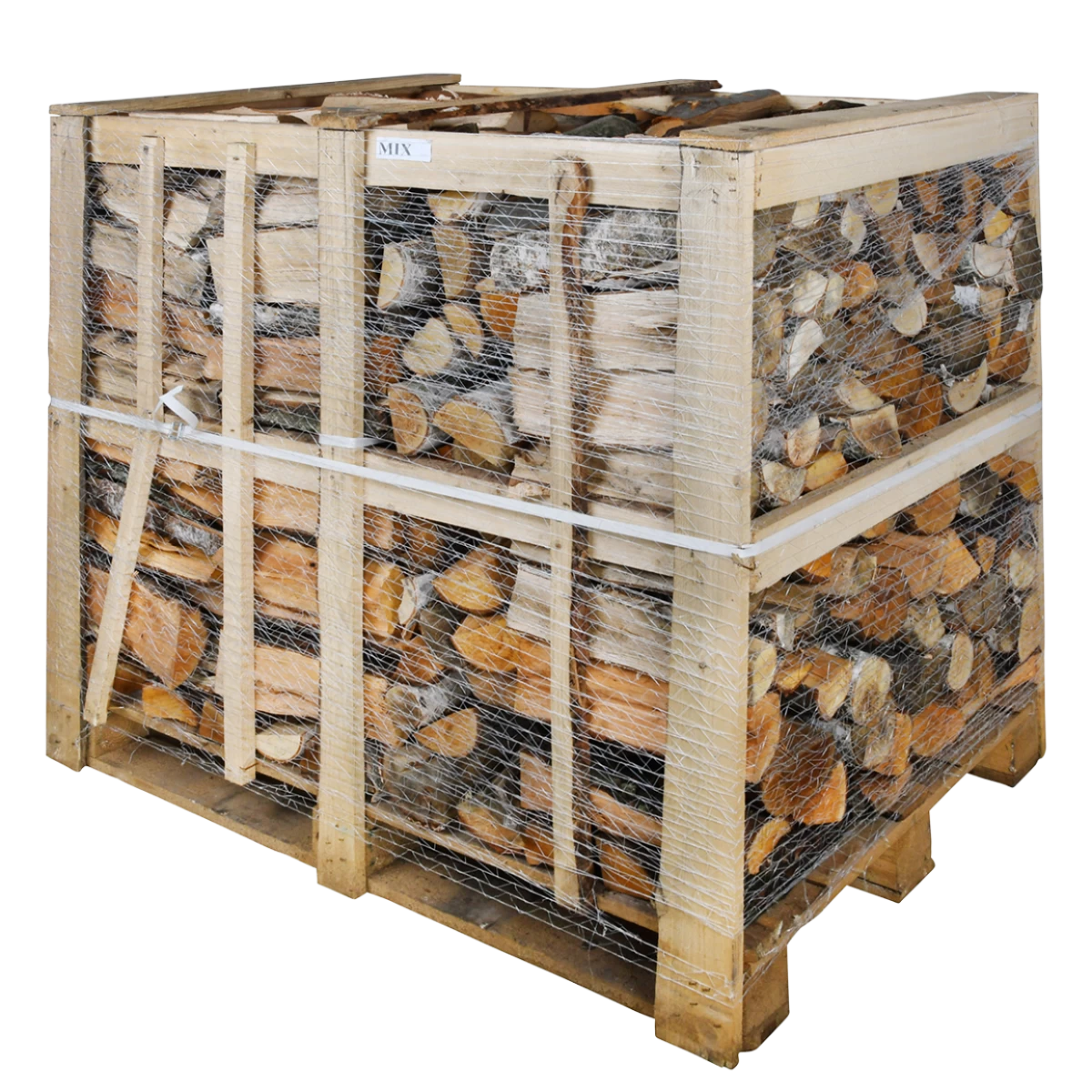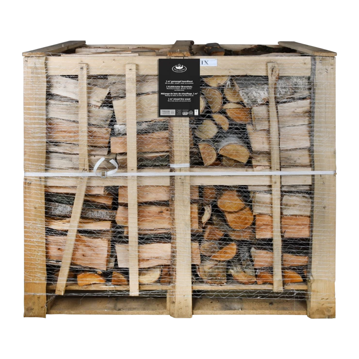 Deze mix van eiken-, beuken-, essen-, en vurenhout geeft een gevarieerd vlammenspel.