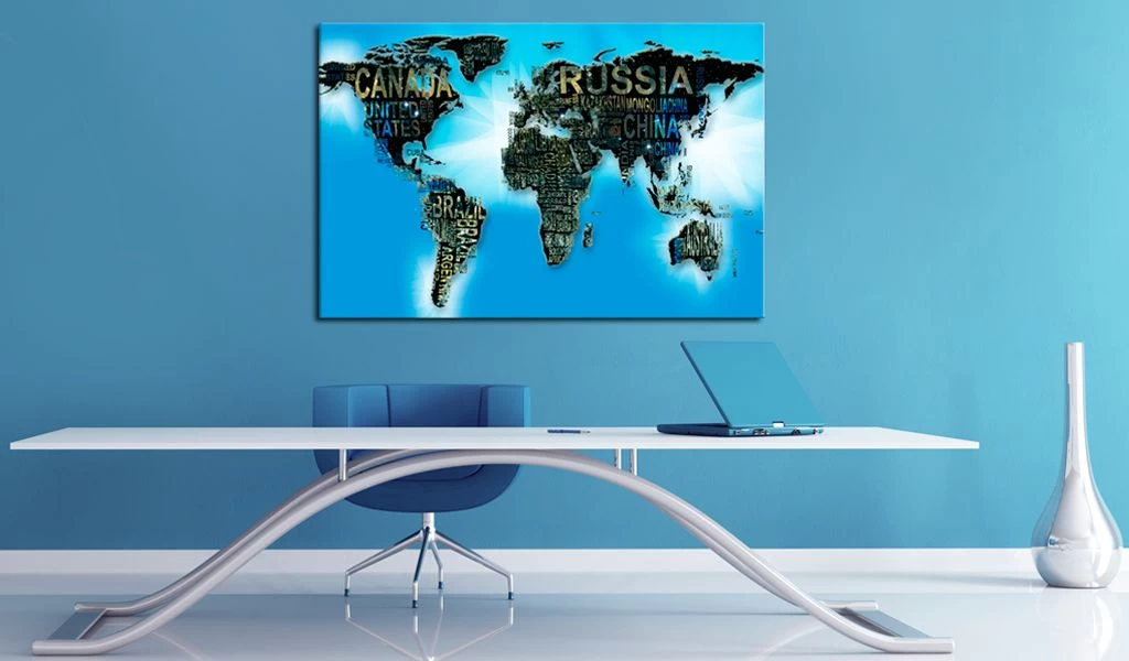 Afbeelding op kurk “Afbeelding op kurk – Blue World [Cork Map]” is veel lichter dan traditionele wanddecoratie. Zo kunnen prikborden worden opgehangen op iedere willekeurige plaats thuis of op kantoor. Het bedrukte doek wordt aangebracht op de kurkplaat. Zo krijgt de print duidelijke kleuren en geeft het de kleinste details weer. Prik er punaises of notities in en creëer zo je individuele ontwerp op de muur!