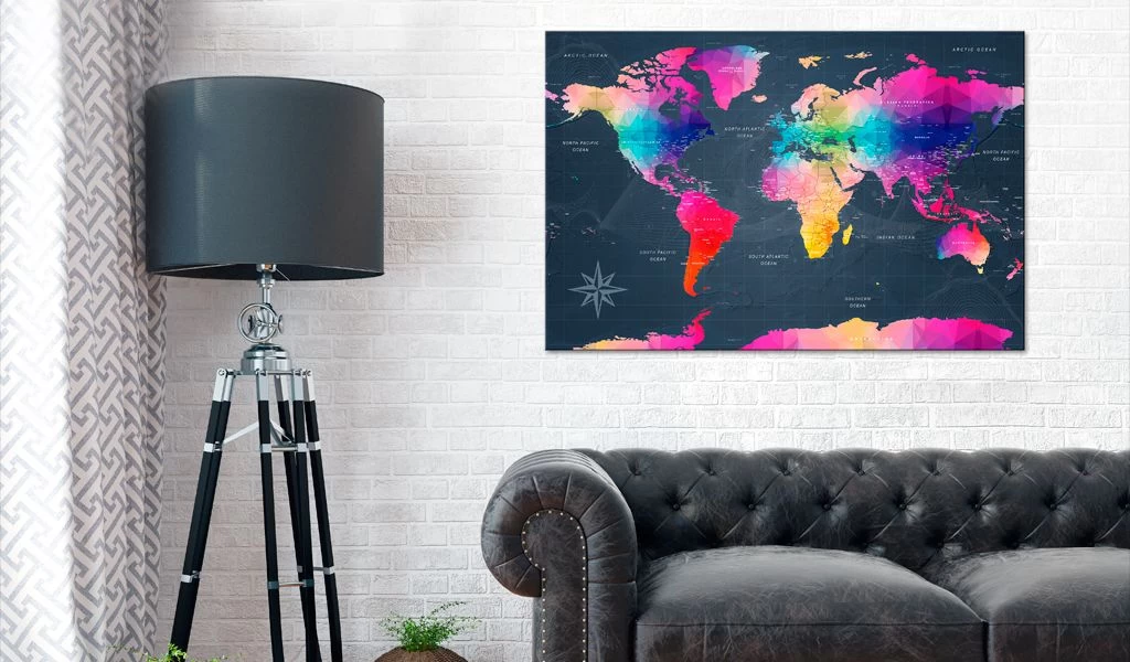 De afbeelding op kurk “Afbeelding op kurk – Colourful Crystals [Cork Map]” is een product voor diegenen die op zoek zijn naar een originele muurversiering. Het ecologische materiaal en het interessante “Afbeelding op kurk – Colourful Crystals [Cork Map]” patroon zorgen ervoor dat een normaal prikbord verandert in een stijlvolle toevoeging met uitgebreide mogelijkheden. In afbeeldingen op kurk kunnen punaises worden geprikt, bezochte plekken worden gemarkeerd of notities worden vastgezet.