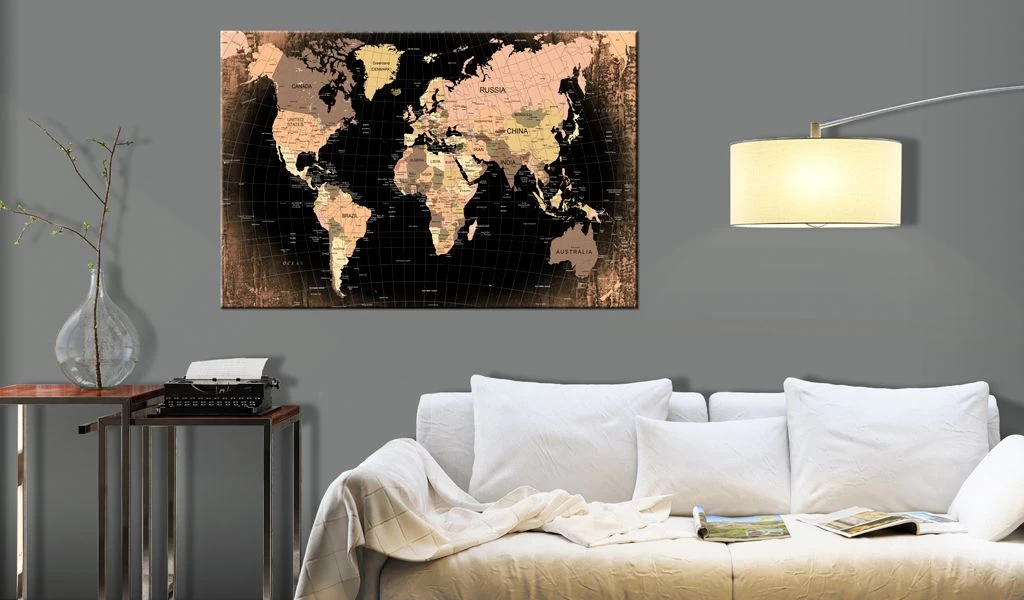 Afbeelding op kurk “Afbeelding op kurk – Planet Earth [Cork Map]” is veel lichter dan traditionele wanddecoratie. Zo kunnen prikborden worden opgehangen op iedere willekeurige plaats thuis of op kantoor. Het bedrukte doek wordt aangebracht op de kurkplaat. Zo krijgt de print duidelijke kleuren en geeft het de kleinste details weer. Prik er punaises of notities in en creëer zo je individuele ontwerp op de muur!