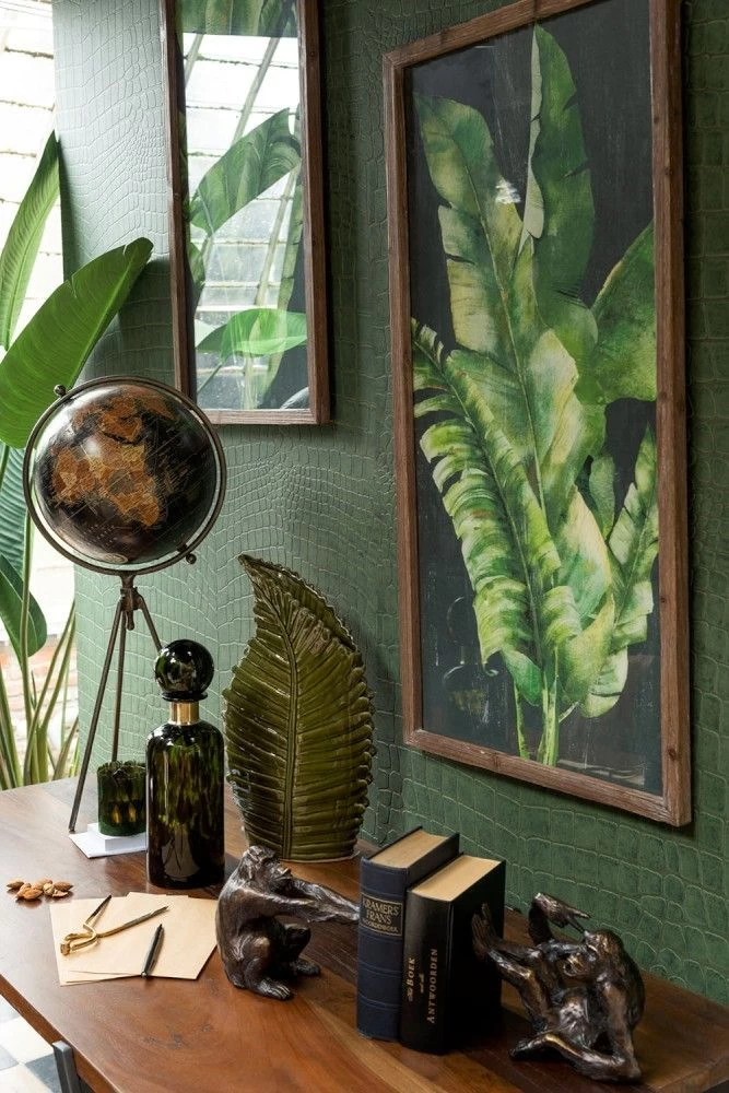 Wake up to nature. Botanical living is niet meer weg te denken. Deze trend bestaat reeds enkele seizoenen, maar dit seizoen kan je deze groene trend bewonderen zoals je deze nog nooit hebt gezien. Verschillende tinten groen zoals smaragd en cipres, spelen hier de hoofdrol! Door ze te combineren met donkere eyecatchers zoals een sofa in petrol blauw krijgen ze een mystieke en tegelijk chique uitstraling! Maak het contrast nog groter door gouden details toe te voegen zoals enkele gouden olifanten of accessoires. The wonders of Botanic Chic are endless…