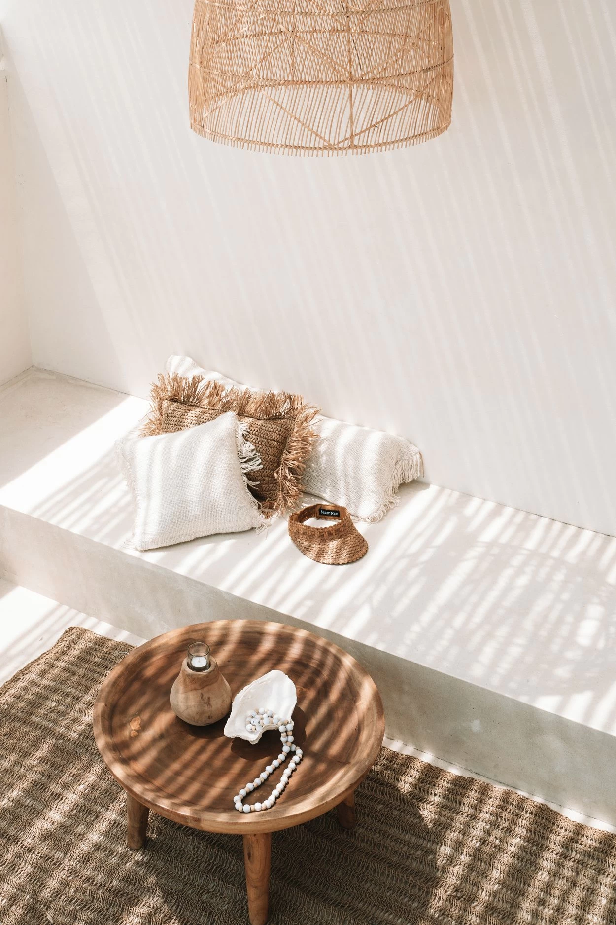 Deze met de hand uitgesneden ‘druppelvormige’ kandelaar van mooi, bleek teakhout is een blikvanger op verschillende plaatsen in huis. Wij houden van de bleke, natuurlijke uitstraling van het hout.