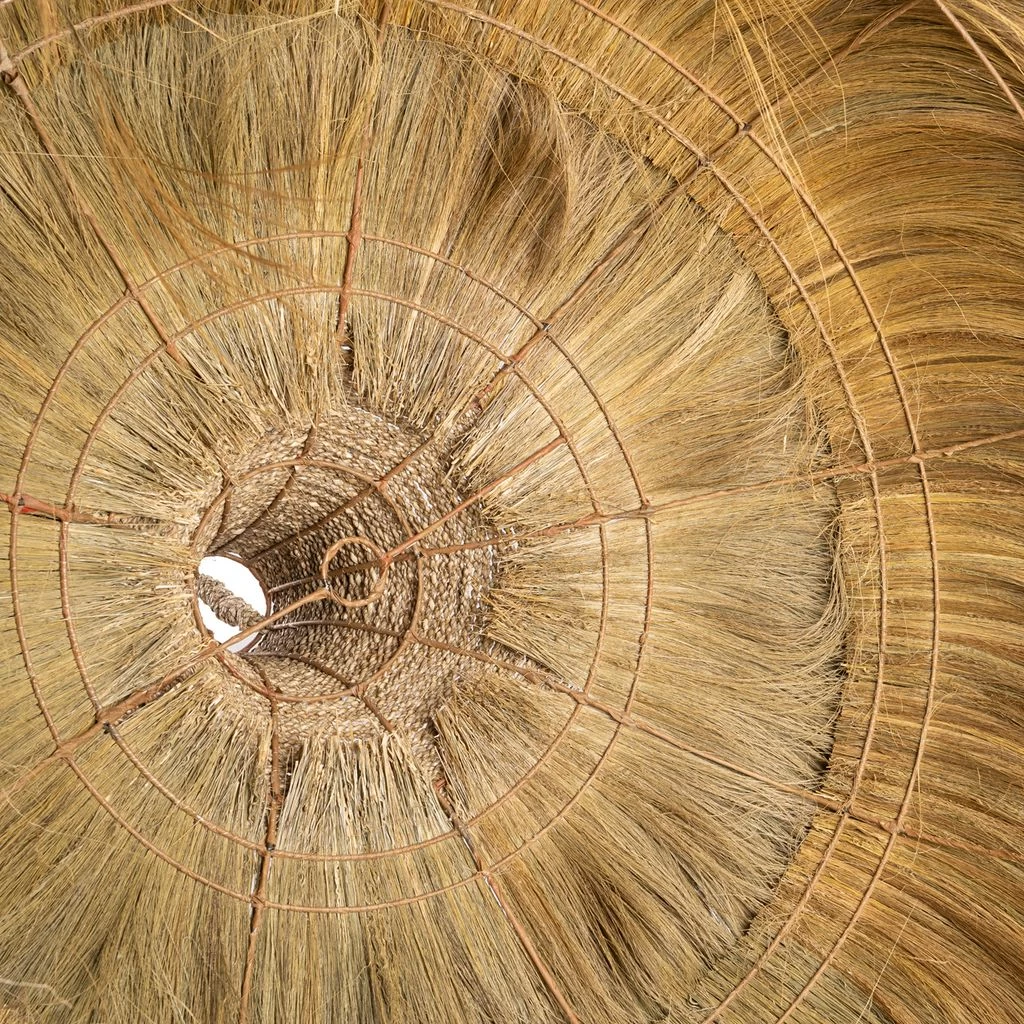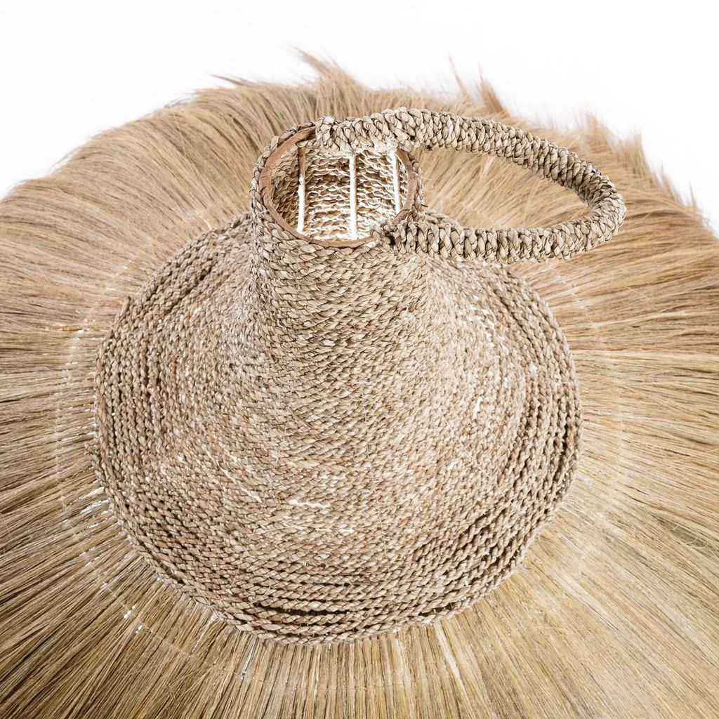 Een cocktail in je hand, een tropische soundtrack en deze prachtige hanglamp zijn alles wat je nodig hebt om jezelf ervan te overtuigen dat je op een ver eiland bent. Met de hand gemaakt van lange strengen mendongras, is deze hanglamp het ultieme statement stuk. Dit is precies wat je nodig hebt om de sfeer te bepalen in je woonkamer of overdekte buitenruimte! Verkrijgbaar in twee (grote) maten.