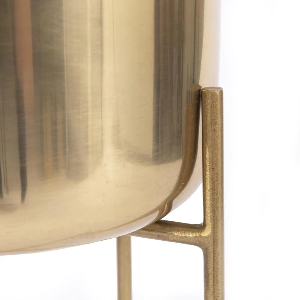 Deze strakke plantenbak in messing heeft een glanzende ronde pot, opgehangen aan inklapbare ronde poten. Met deze plantenbak voeg je meteen een vleugje verfijning toe aan elke binnenruimte, waardoor zelfs de meest gewone kamerplant luxueus lijkt. Hij is verkrijgbaar in drie maten en laten we eerlijk zijn, ze zien er het beste uit als ze gecombineerd worden.