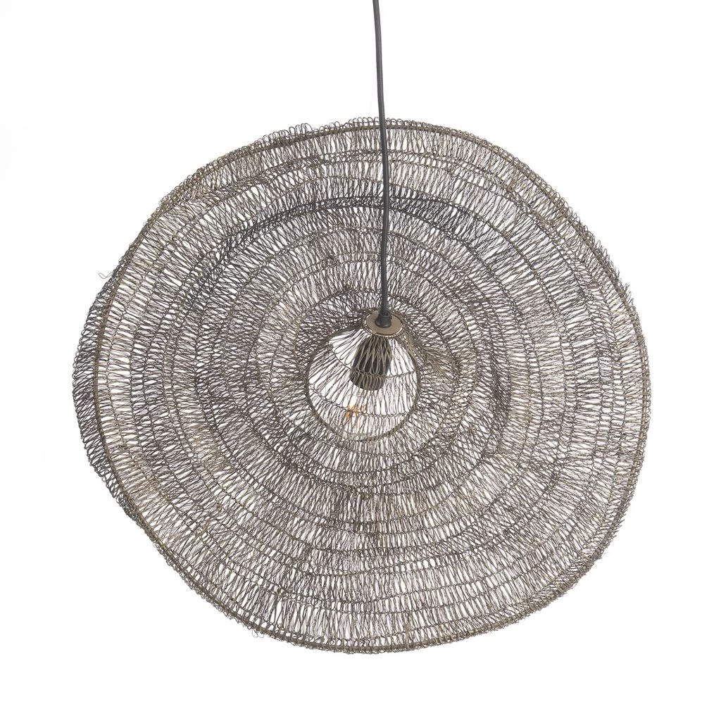Deze prachtige ijzeren hanglamp met een diepe messing glans is niets minder dan een kunstwerk. Volledig met de hand gemaakt, we kunnen gewoon niet stoppen met kijken naar de details. Deze hanger zal prachtig staan boven uw eettafel, in uw woonkamer, uw slaapkamer of zelfs uw overdekte buitenruimte
