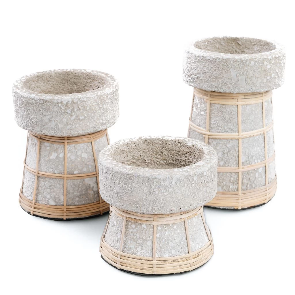 Het is tijd om je (salon)tafel opnieuw in te richten! Of het nu winter of zomer is, een paar goed uitziende kaarsenhouders brengen direct gezelligheid. De Serene kaarsenhouders zijn gemaakt van prachtig gestructureerd terracotta, in betongrijs of diepzwart, en zijn verkrijgbaar in drie maten per kleur. Ze zijn afgewerkt met een zorgvuldig vervaardigd rotanrooster, dat de terracotta verrijkt met enkele natuurlijke tinten. Mix en match gerust maten en kleuren!