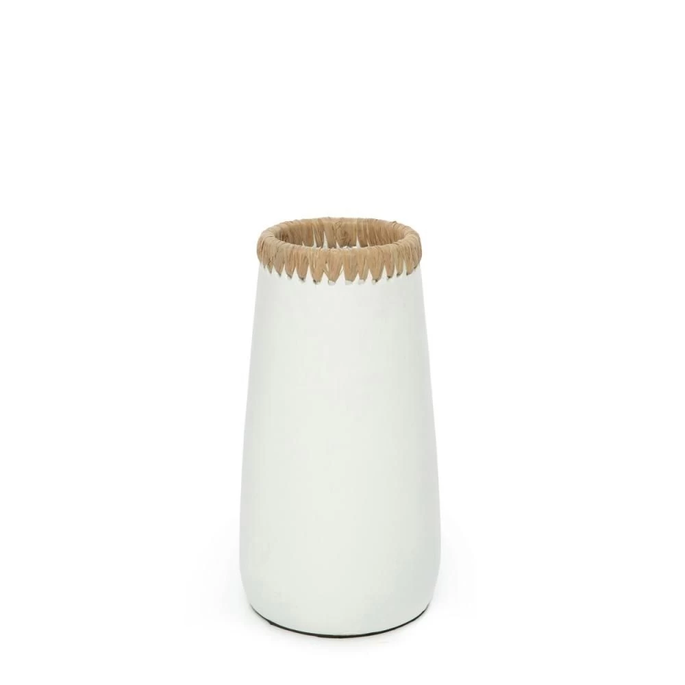 Als u een boeket bloemen (gedroogd) in uw woonkamer of badkamer wilt zetten, maar niet veel ruimte hebt, ga dan voor verticaal! Onze slanke Sneaky vazen, verkrijgbaar in drie maten, zijn gemaakt van terracotta met een geweldig raffia detail bovenop.