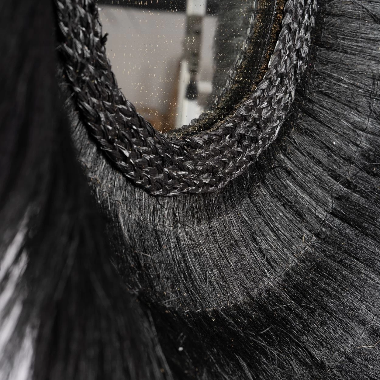 Deze prachtige spiegel is een fantastische manier om wat drama toe te voegen aan uw huis, kantoor of zelfs overdekte buitenruimte. In plaats van plat is in deze spiegel het glas “verzonken”, wat veel diepte toevoegt aan het ontwerp. Met de hand gemaakt van gedroogd gras dat zwart is geverfd, maakt de prachtige diepe tint van dit stuk een unieke en tijdloze schat. Ook verkrijgbaar in naturel.