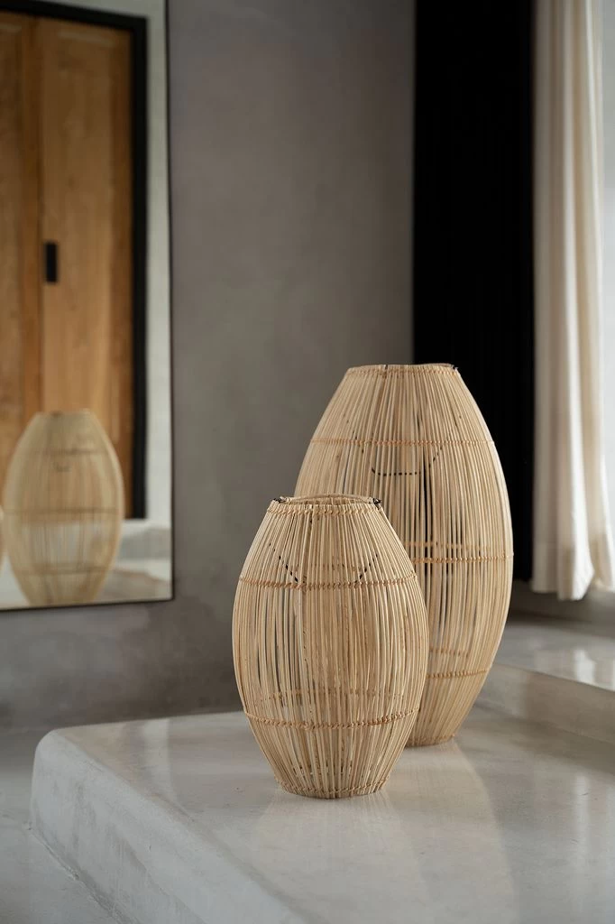 Deze leuke klokvormige lamp kan worden gebruikt als hanglamp of als vloerlamp. Ze is verkrijgbaar in drie maten, zodat ze gemakkelijk kunnen worden gegroepeerd voor die extra wow-factor. Het ontwerp in rotan creëert gezellige strepen van licht door uw woonkamer, keuken of zelfs overdekte buitenruimte.