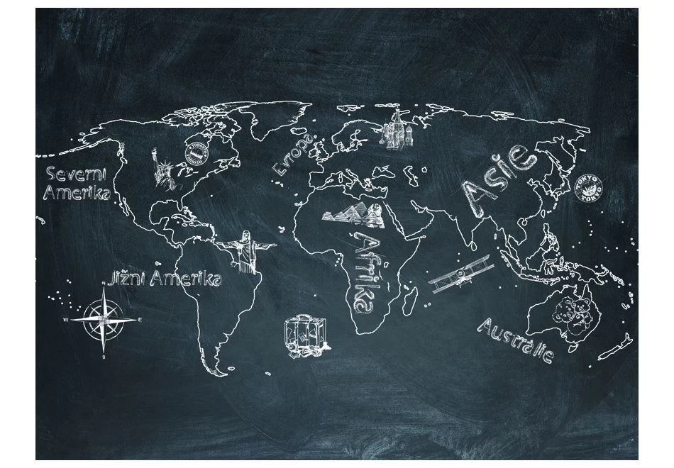 Bekijk hoe je het fotobehang “Fotobehang – Kleine reizen. Grote reis (Tsjechisch)” stap voor stap monteert.