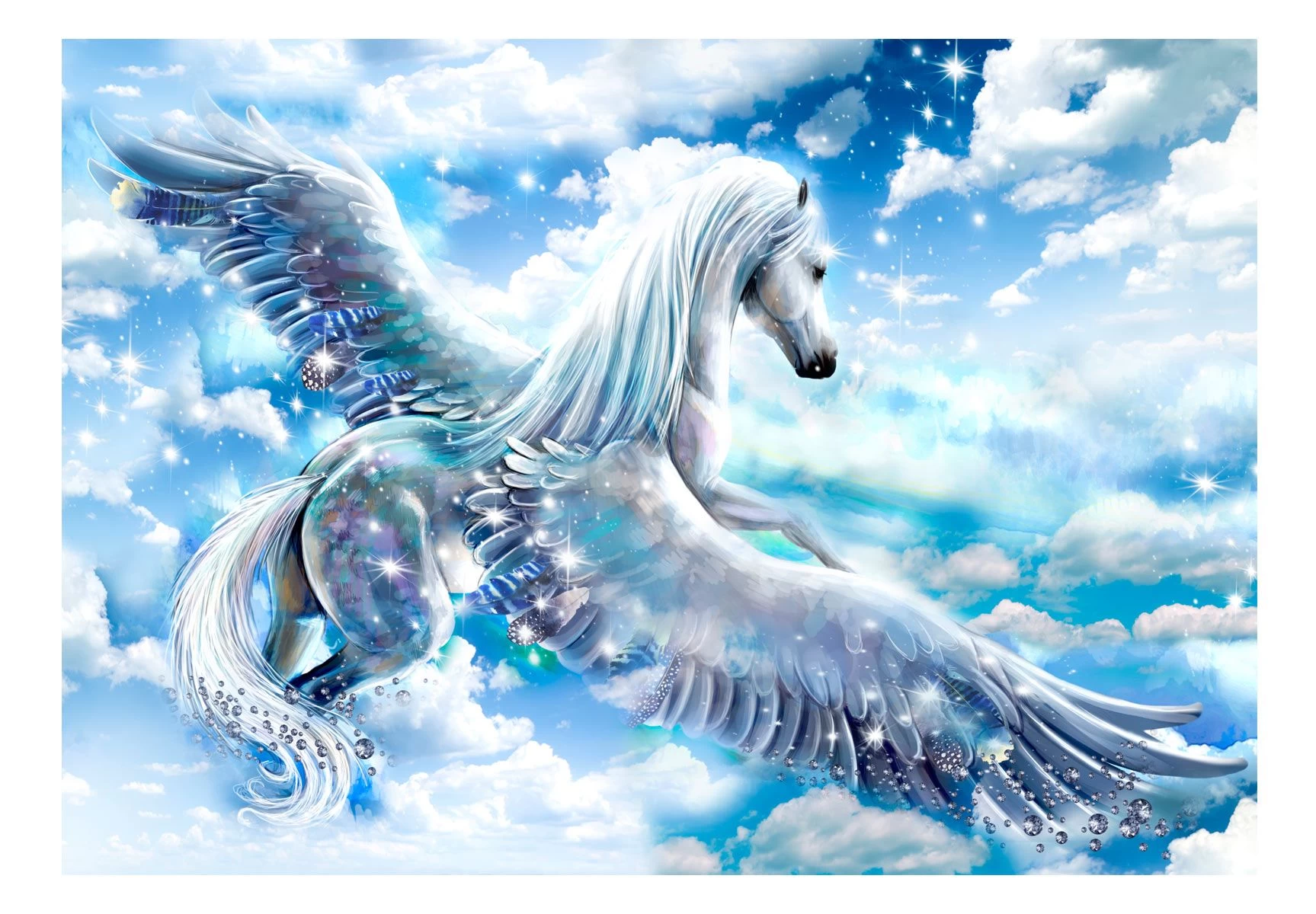 Duurzaam, water- en krasbestendig vlieseline fotobehang “Fotobehang – Pegasus (Blue)” om op de muur te plakken. Het fotobehang Perfecte dag met inspirerend motief vormt een effectieve decoratie voor iedere ruimte. Vlieselinebehang wordt aangebracht met lijm Het kan in elke ruimte worden aangebracht, zelfs in badkamer en keuken. Vlieselinebehang, half-matte laag. Vlieseline verbloemt kleine onregelmatigheden van de muur. Het vormt een verwarmende, isolerende laag en zorgt dat de muren kunnen blijven ademen. De watervaste print is zeer bestendig.