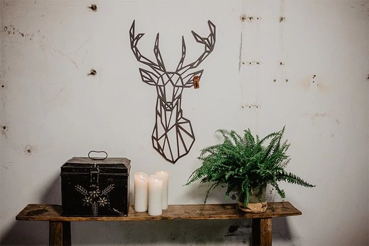Maak kennis met de Houten Wanddecoratie Hert. Ben je opzoek naar een unieke decoratie voor aan de muur? Dit prachtige dier is gefreesd uit hout en een echte eye-catcher voor in de kamer! Deze geometrische wanddecoratie zal zeker shinen aan de muur! Omdat natuurlijke materialen een fijne sfeer geven, krijgen houten accessoires steeds vaker de voorkeur in het interieur. En omdat geometrische vormen zo uniek zijn, is het een origineel cadeau voor bijvoorbeeld een house-warming. Super leuk om te geven, maar nog leuker om te krijgen!