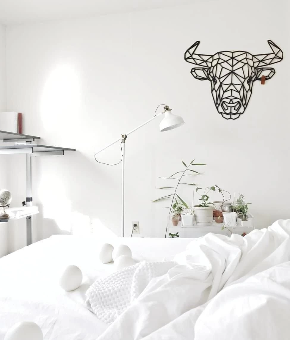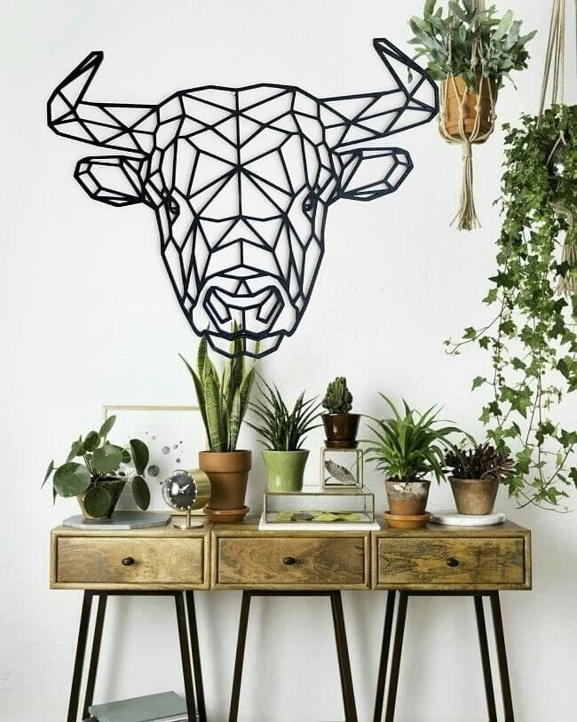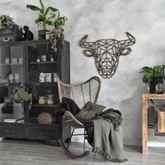 Heb jij een witte, Scandinavische woonstijl of is er bij jou thuis veel kleur te vinden? Ga jij voor een moderne, strakke inrichting of kies je voor een landelijke, warme sfeer? Onze geometrische stier is een allemansvriend en gaat eenvoudig op in jouw interieurstijl. Wat dacht je van een zwarte stier op een witte muur? Of ga voor een metallic gouden stier tegen een zwarte achtergrond. Door op zoek te gaan naar contrast zorg je dat jouw stier er nog meer uit springt.