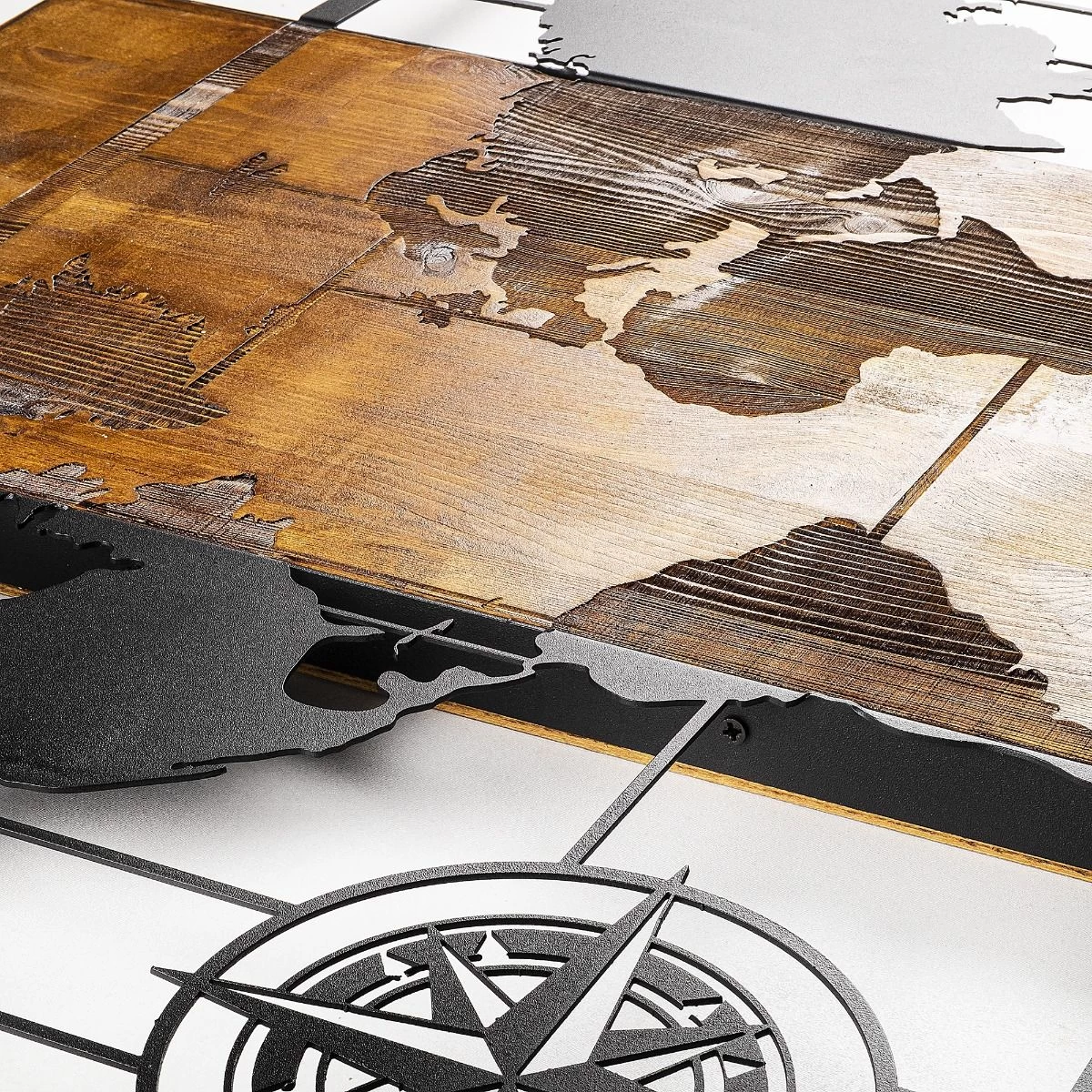 Geometrische Wereldkaart Met Kompas Van Metaal En Hout