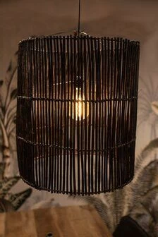Deze prachtige hanglamp van De Kistenkoning misstaat met haar strakke design in geen enkele woonkamer. Creëer verschillende sferen door te variëren met wattages Het mooie opengewerkte rotan van de hanglamp zorgt voor speelse lichtpatronen en geeft je interieur nét dat unieke extraatje! De hanglamp heeft een 1 meter lang snoer, een afdekkapje van kunststof en een E27-fitting. Een lichtbron en een stekker worden niet meegeleverd.
