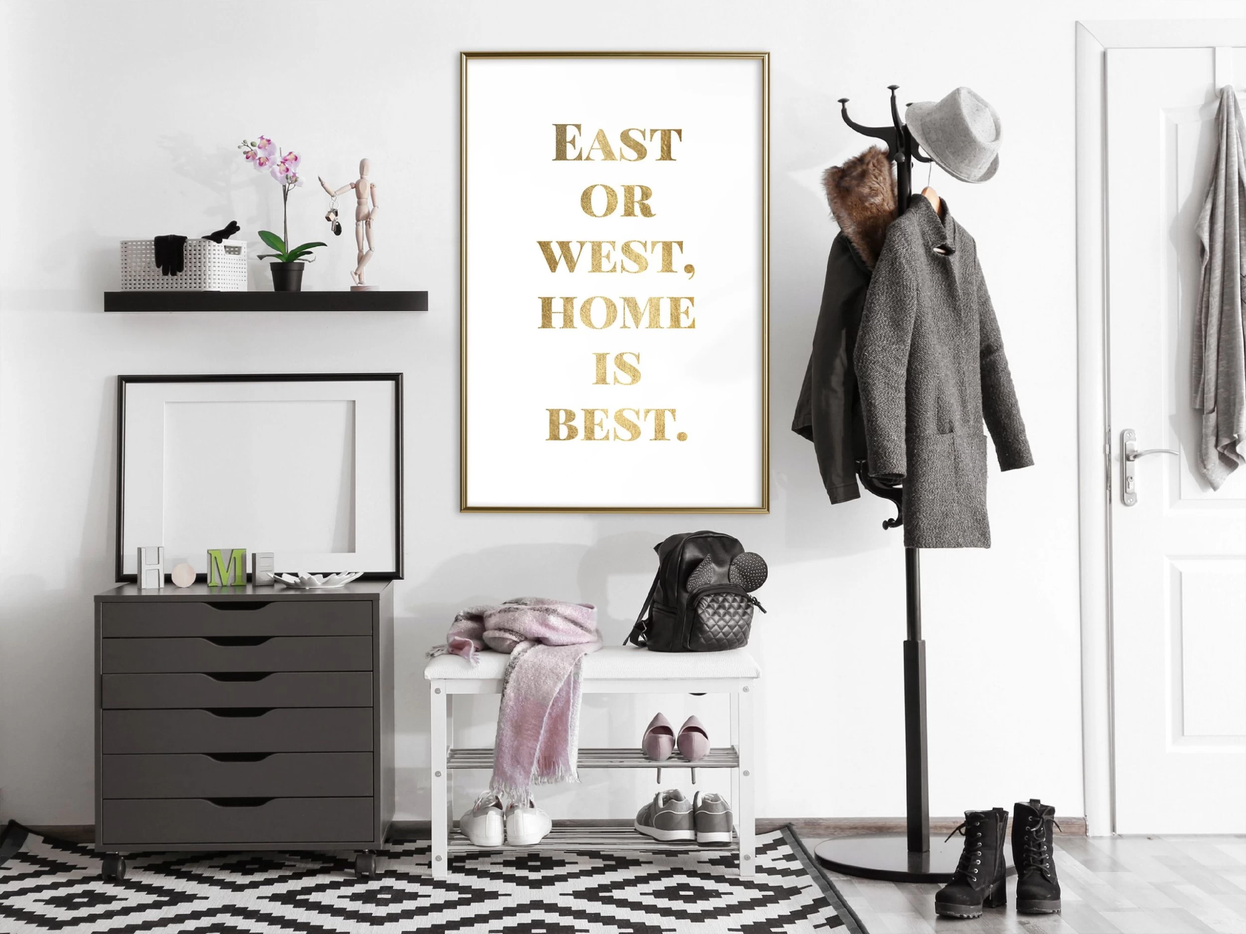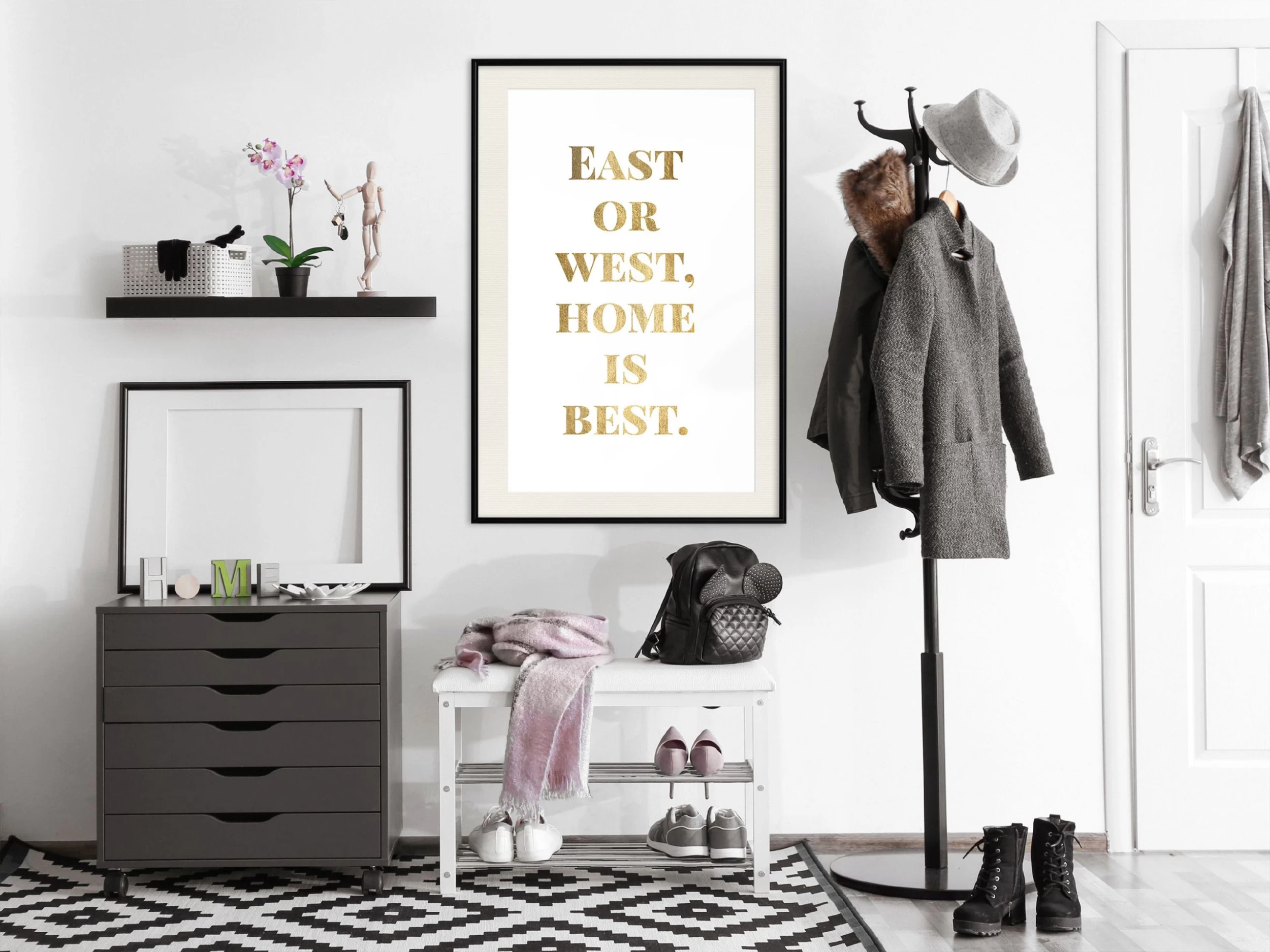 Poster “Poster – Gold Home Is Best [Poster]” is een product van ons ontwerpteam, dat ervoor zorgt dat onze voorstellen altijd modieus zijn. De poster is beschikbaar in enkele formaten en met verschillende lijsten, zodat je eenvoudig een variant vindt die aan jouw smaak voldoet.