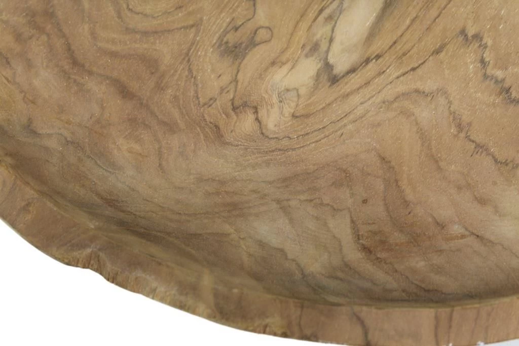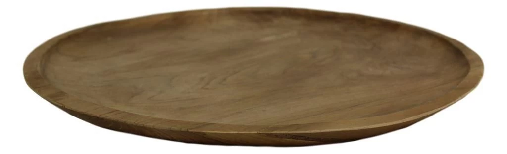 Met de hand gemaakt van een massief onbehandeld teakhout. Een perfect bord voor lekkere salade, aperitief, pizza of een lekker stuk taart.