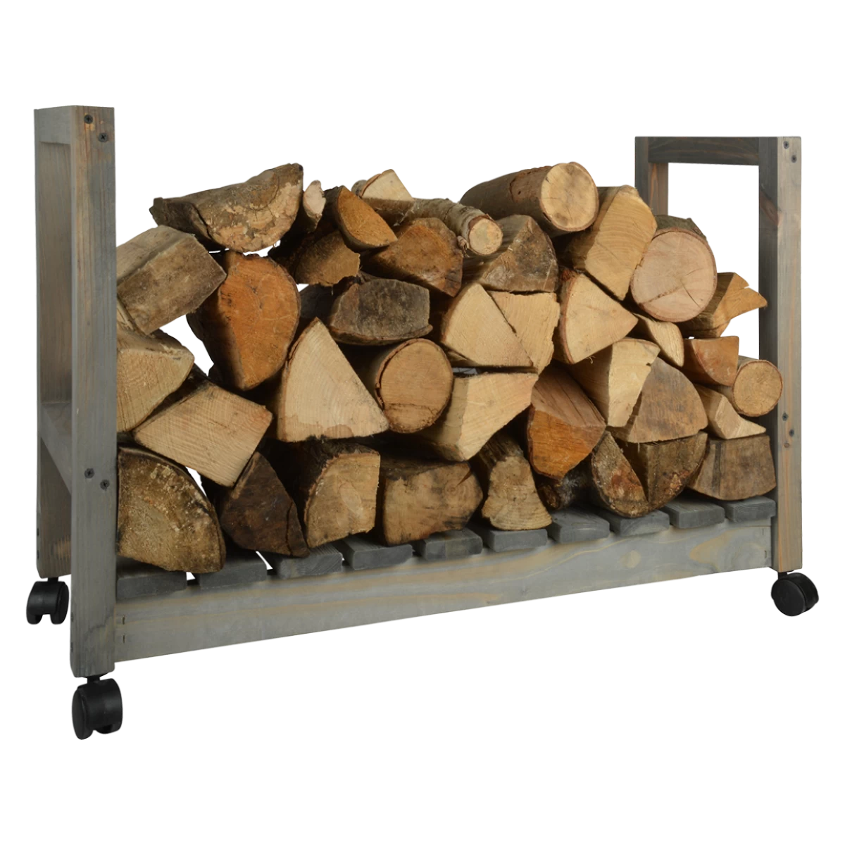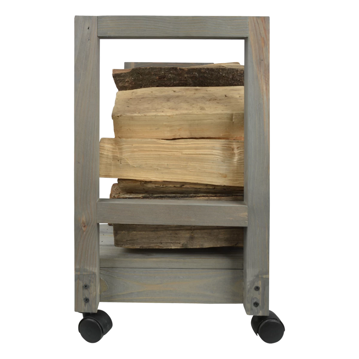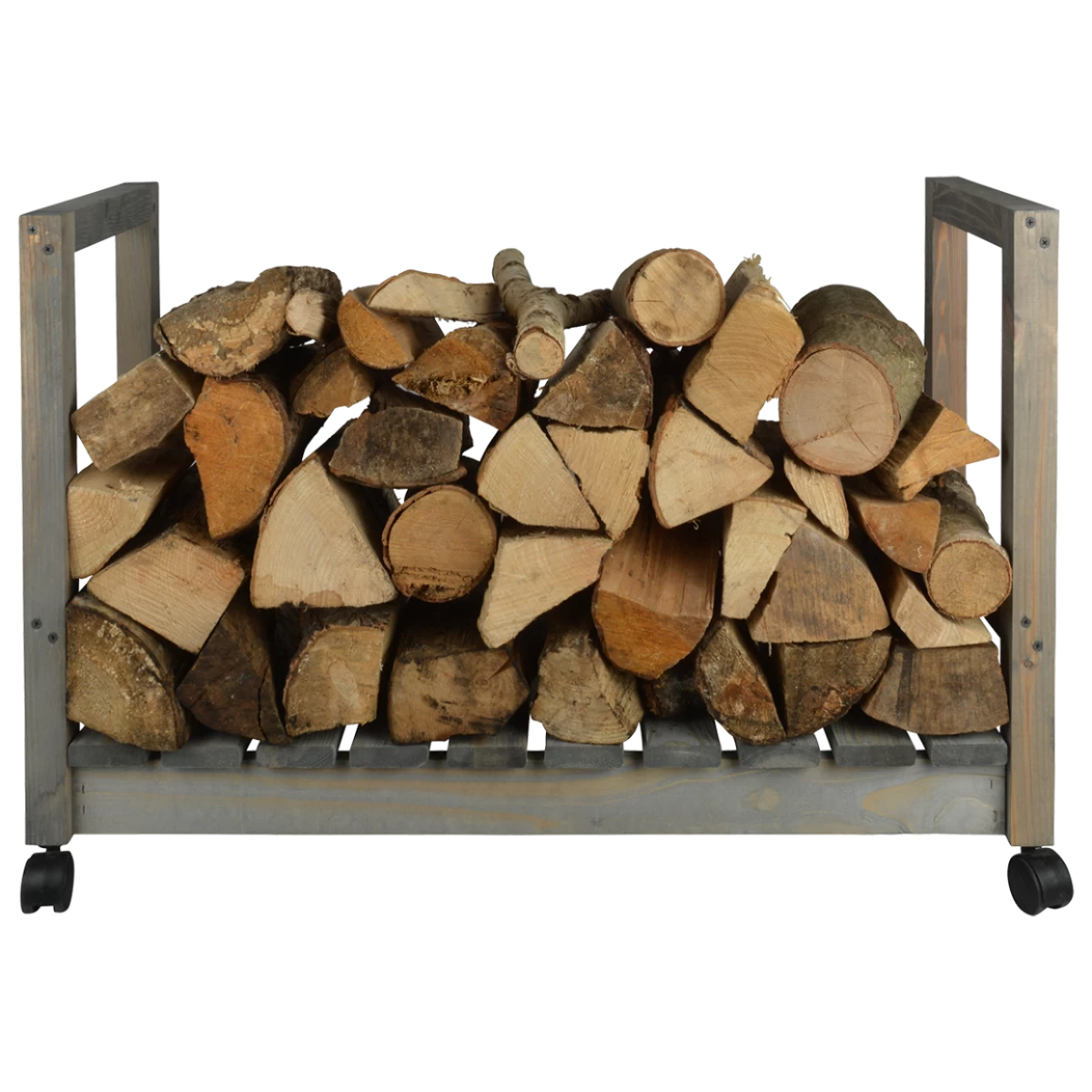 Deze strakke, verrijdbare houtopslag is voorzien van zwenkwielen. Makkelijk buiten te vullen en naar binnen te rijden.