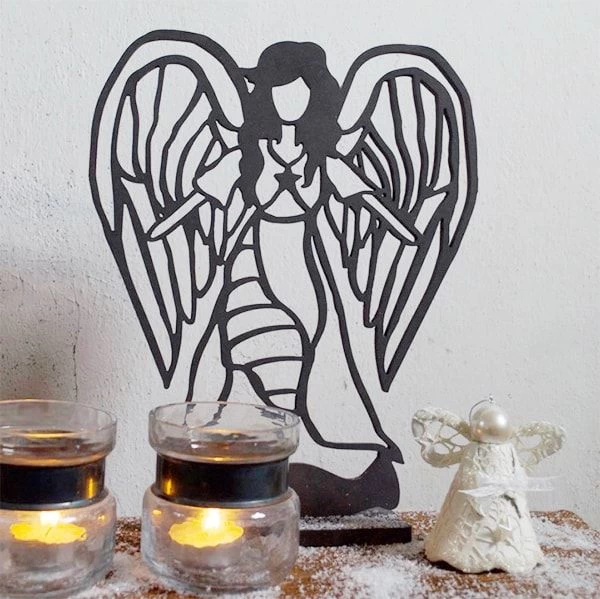 De engel heeft een grote rol in het kerstverhaal en hoort daarom zeker thuis in een kerstinterieur. Deze prachtige geometrische mini engel is 9 mm dik en verkrijgbaar in de kleur black.