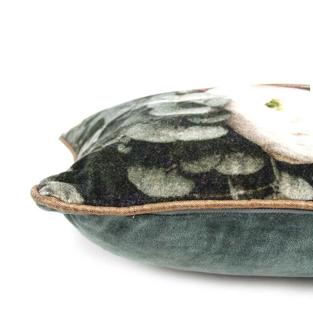 Dit kussen met bloemen motief heeft een exotische uitstraling. Als je naar dit kussen kijkt, krijg je zin in vakantie! Leg het kussen in een stoel of op je bank. Haal de natuur in huis. We houden van zijn fluweelzachte gevoel. Onze tip: kies rotan meubels en maak de tropische sfeer compleet!