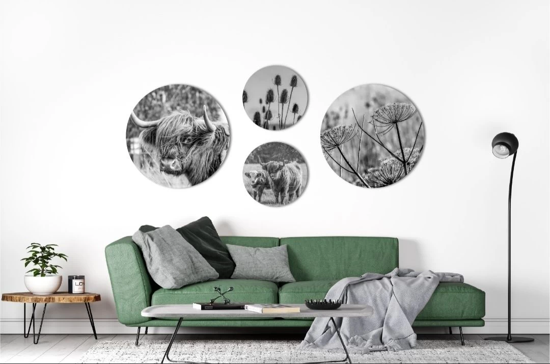 Muurcirkel Set Van 4 Natuur Schotse Hooglander