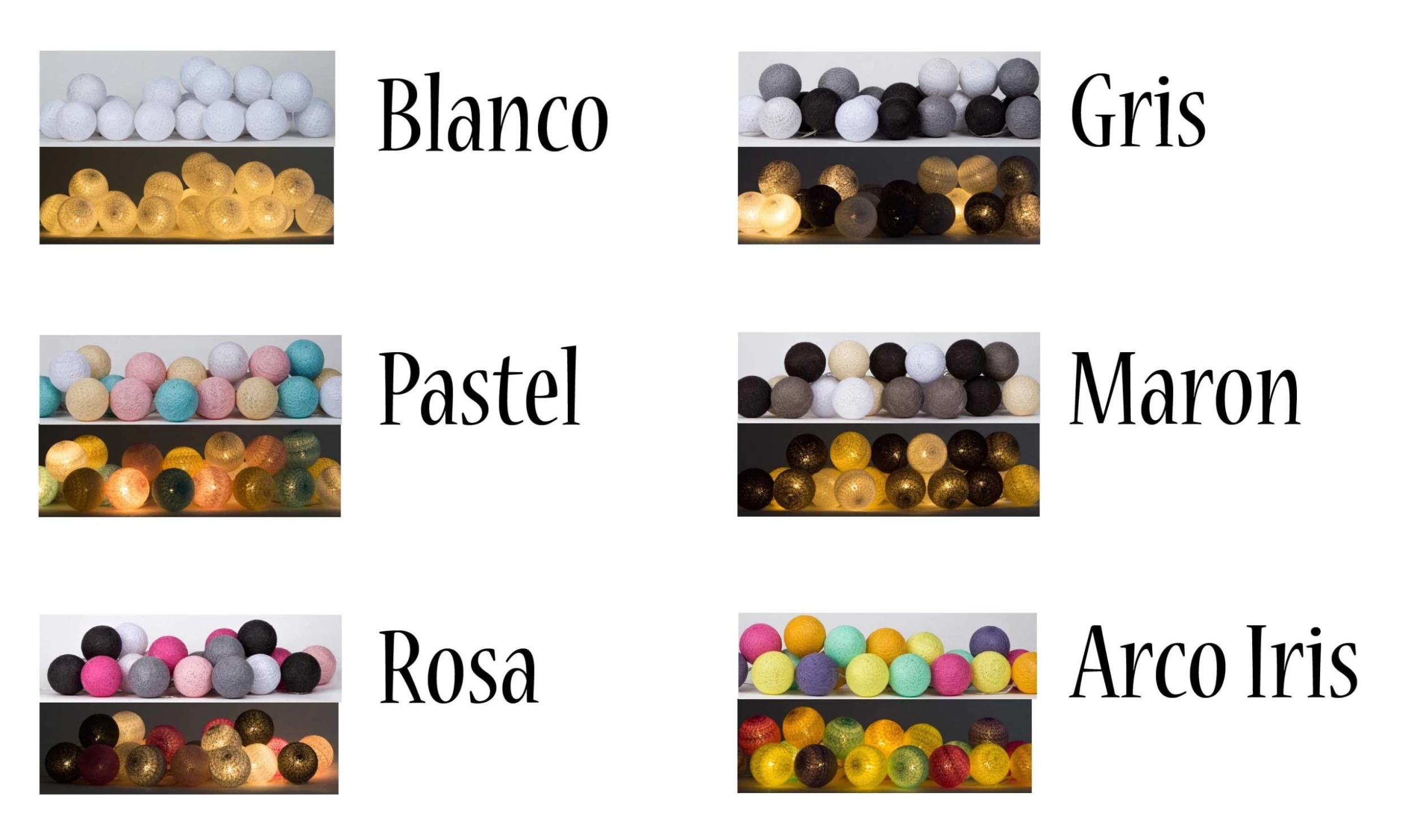 Elke ball heeft een diameter van 6 cm, totaal zitten er 20 ballen aan. De totale lengte van de lichtslinger is 7.78 meter.