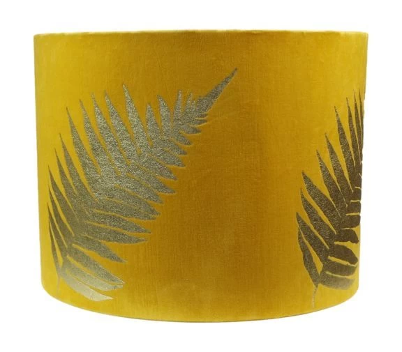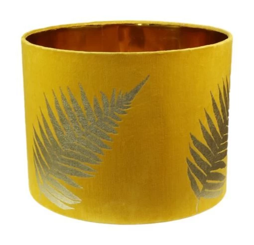 Ronde Lampenkap Met Print – Mosterdgeel/goud – Velvet – 42x42x32 Cm