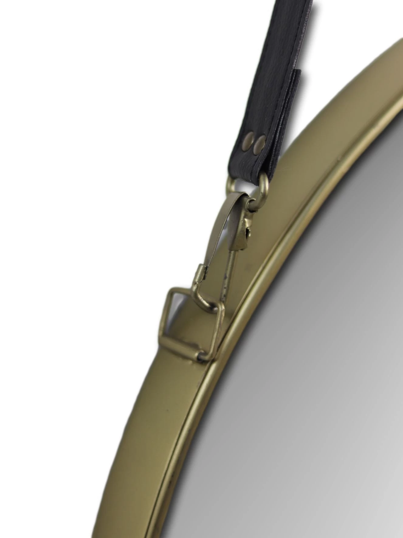 Een mooie spiegel is onmisbaar in huis en door de metalen rand past deze spiegel perfect in een modern interieur. De wandspiegel is voorzien van een stevige riem en een zwart metalen haak waaraan de spiegel kan worden opgehangen. De spiegel is niet