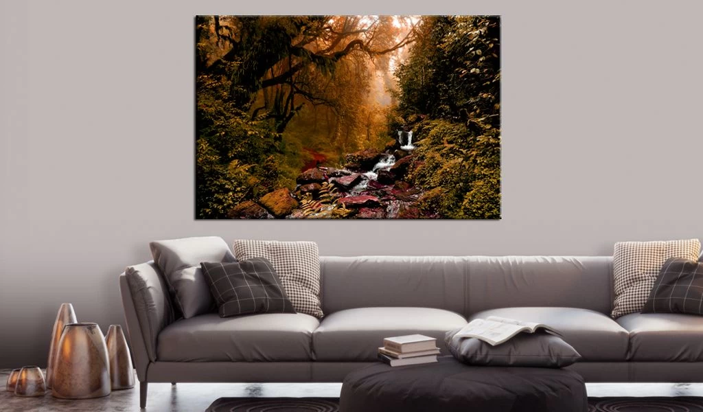 Laat de canvas print “Schilderij – Autumn Waterfall” uw woning en de woningen van uw dierbaren veranderen!
