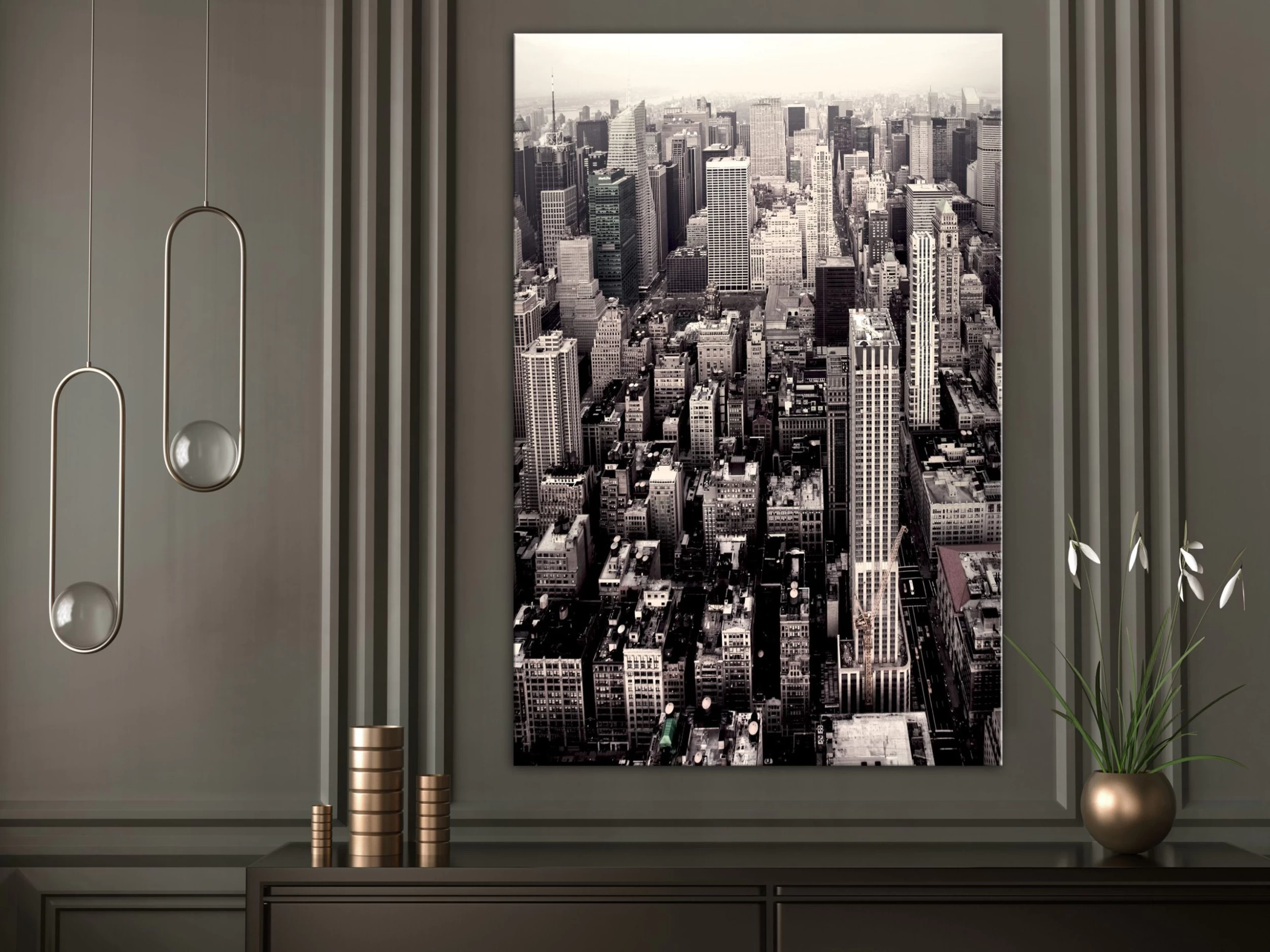 Laat de canvas print “Schilderij – Manhattan In Sepia (1 Part) Vertical” uw woning en de woningen van uw dierbaren veranderen!