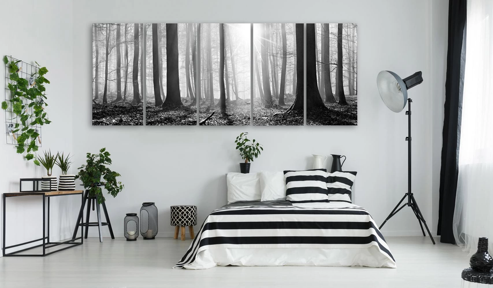Laat de canvas print “Schilderij – Monochrome Forest” uw woning en de woningen van uw dierbaren veranderen!