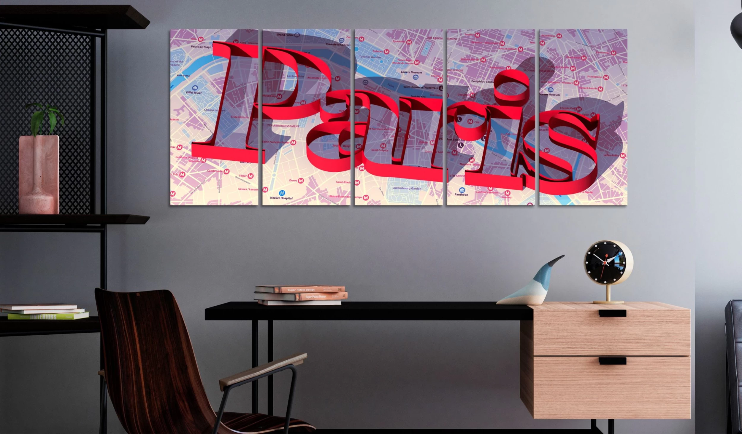 Laat de canvas print “Schilderij – Red Paris (5 Parts) Narrow” uw woning en de woningen van uw dierbaren veranderen!