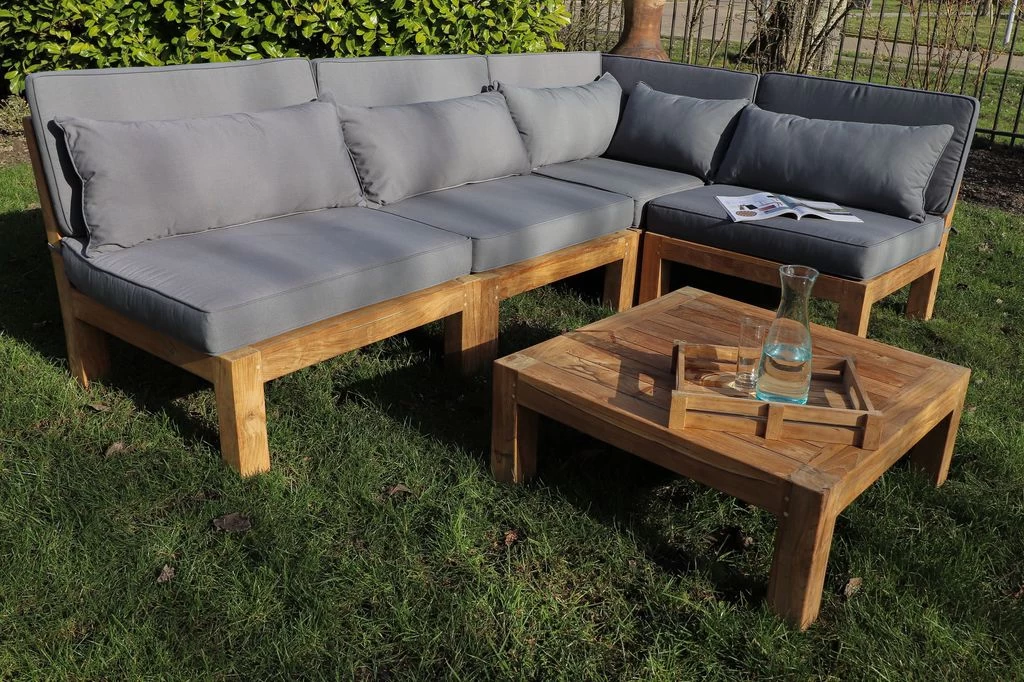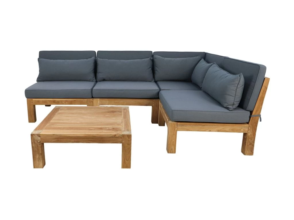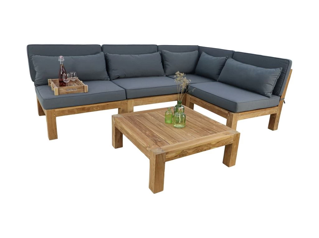 Tuin Loungeset Aruba 5-delig + Hoek (incl. Kussens) – Donkergrijs – Teak