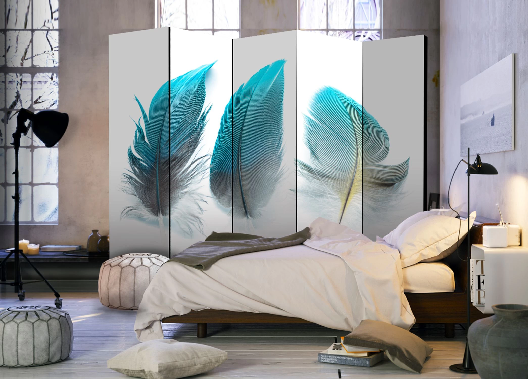 Het decoratieve vouwscherm “Vouwscherm – Blue Feathers II [Room Dividers]” past uitzonderlijk mooi in een modern interieur. Het houten tweezijdig bedrukte vouwscherm geeft niet alleen een mooie opdeling van een ruimte maar geeft ook een fantastische flair aan uw interieur. De perfectie uitvoering en het originele motief in full HD uitvoering zorgen ervoor dat de kamervouwschermen iedere ruimte een originele charme verschaffen. Een prachtig kamervouwscherm is een zeer originele versiering en kan bijvoorbeeld prima worden toegepast in woningen of dienstruimten. (kapsalon, dokterskliniek, administratiekantoor etc)