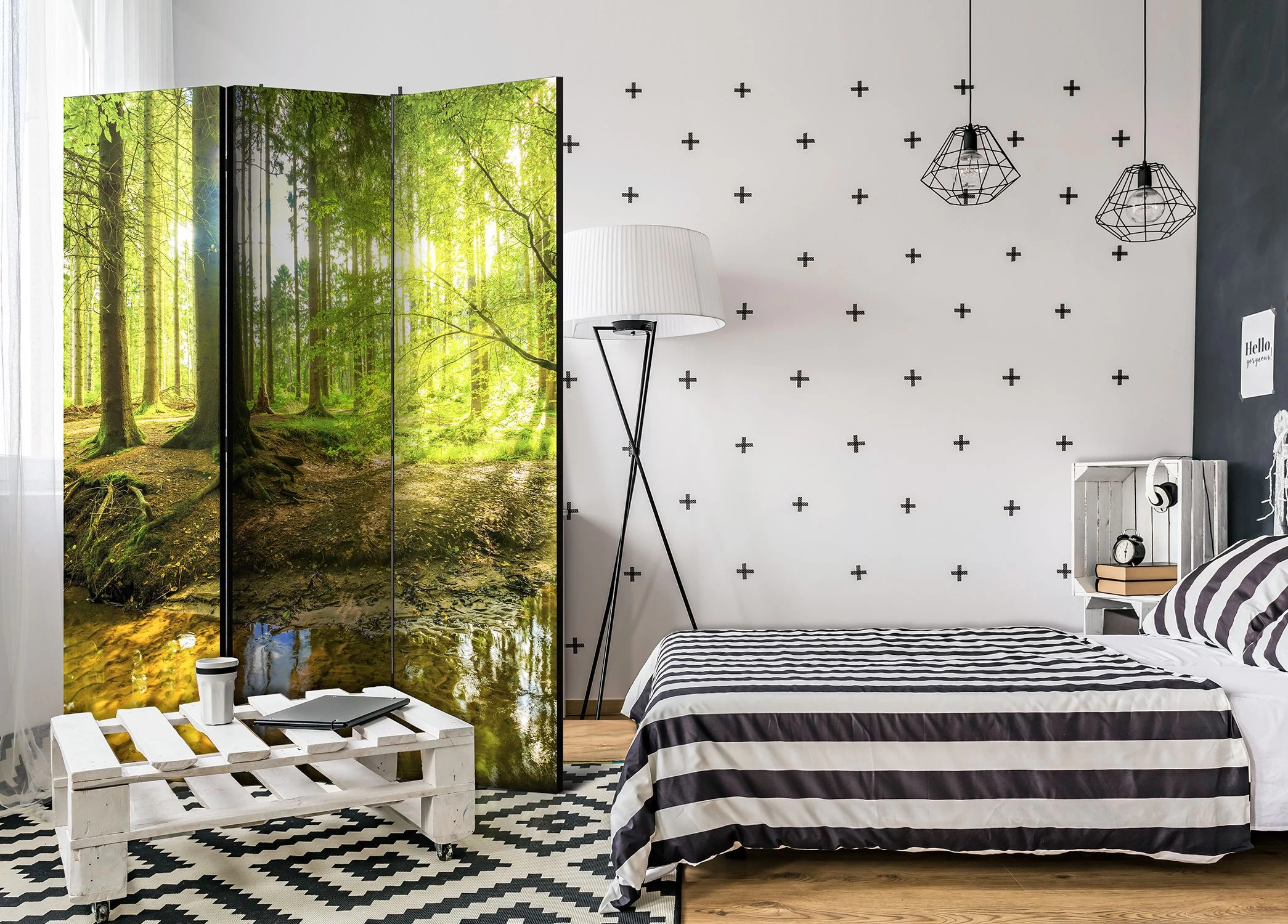 Het decoratieve vouwscherm “Vouwscherm – Forest Lake [Room Dividers]” past uitzonderlijk mooi in een modern interieur. Het houten driedelige en tweezijdig bedrukte vouwscherm geeft niet alleen een mooie opdeling van een ruimte maar geeft ook een fantastische flair aan uw interieur. De perfectie uitvoering en het originele motief in full HD uitvoering zorgen ervoor dat de kamervouwschermen iedere ruimte een originele charme verschaffen. Een prachtig kamervouwscherm is een zeer originele versiering en kan bijvoorbeeld prima worden toegepast in woningen of dienstruimten. (kapsalon, dokterskliniek, administratiekantoor etc)