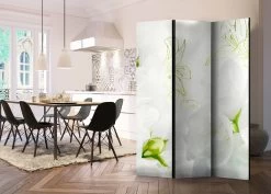Het decoratieve vouwscherm “Vouwscherm – Magical World II [Room Dividers]” past uitzonderlijk mooi in een modern interieur. Het houten tweezijdig bedrukte vouwscherm geeft niet alleen een mooie opdeling van een ruimte maar geeft ook een fantastische flair aan uw interieur. De perfectie uitvoering en het originele motief in full HD uitvoering zorgen ervoor dat de kamervouwschermen iedere ruimte een originele charme verschaffen. Een prachtig kamervouwscherm is een zeer originele versiering en kan bijvoorbeeld prima worden toegepast in woningen of dienstruimten. (kapsalon, dokterskliniek, administratiekantoor etc)