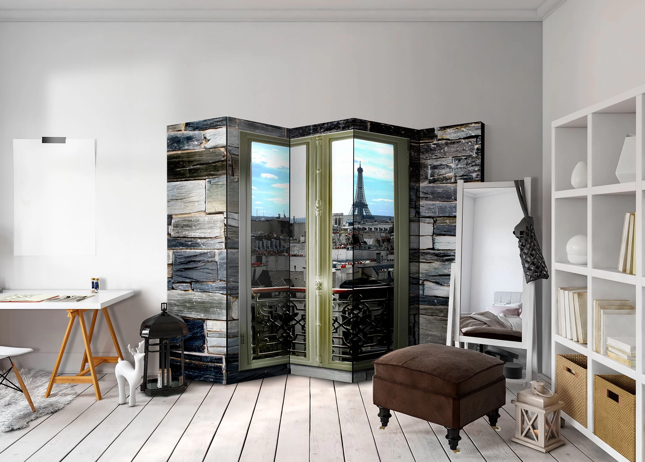 Het decoratieve vouwscherm “Vouwscherm – Parisian View II [Room Dividers]” past uitzonderlijk mooi in een modern interieur. Het houten tweezijdig bedrukte vouwscherm geeft niet alleen een mooie opdeling van een ruimte maar geeft ook een fantastische flair aan uw interieur. De perfectie uitvoering en het originele motief in full HD uitvoering zorgen ervoor dat de kamervouwschermen iedere ruimte een originele charme verschaffen. Een prachtig kamervouwscherm is een zeer originele versiering en kan bijvoorbeeld prima worden toegepast in woningen of dienstruimten. (kapsalon, dokterskliniek, administratiekantoor etc)