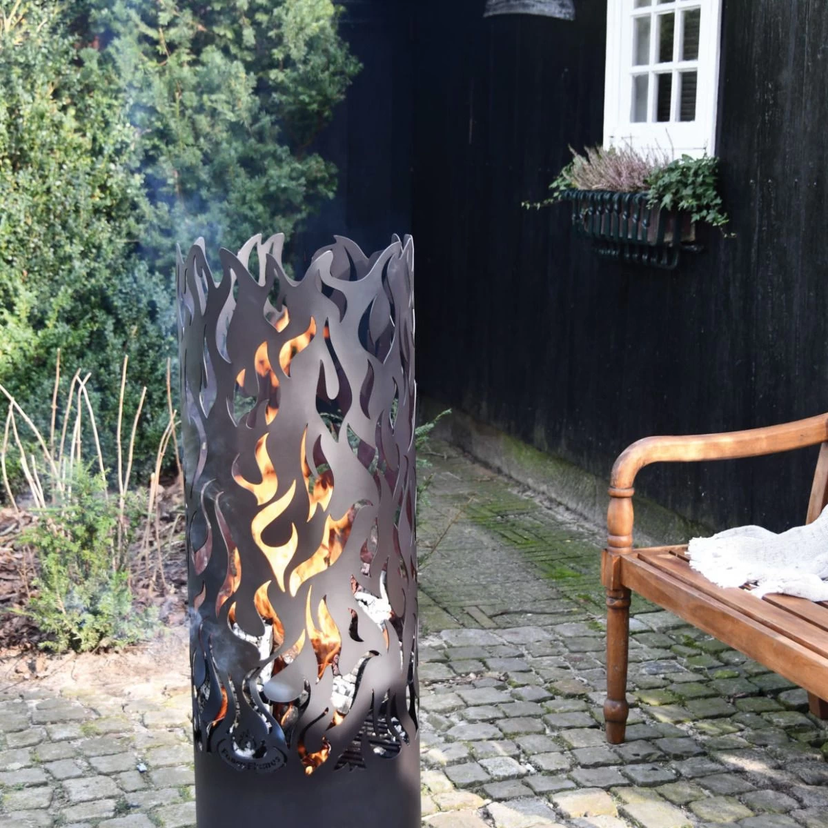Deze vuurton is een sieraad in iedere tuin. De lasergesneden vlammen geven een prachtig effect. De vuurton is gemaakt van staal en is voorzien van een deurtje zodat de as makkelijk kan worden verwijderd.