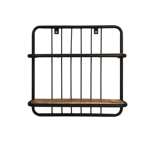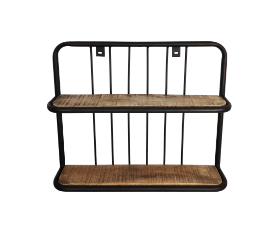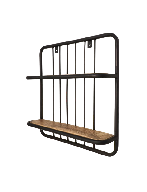 Dit stevige en multifunctionele wandrek van De Kisten Koning is een echte eyecatcher aan iedere muur! Het wandrek past perfect in een industrieel of landelijk interieur, dankzij de mooie en subtiele combinatie van hout en ijzer. Het wandrek heeft 2 planken