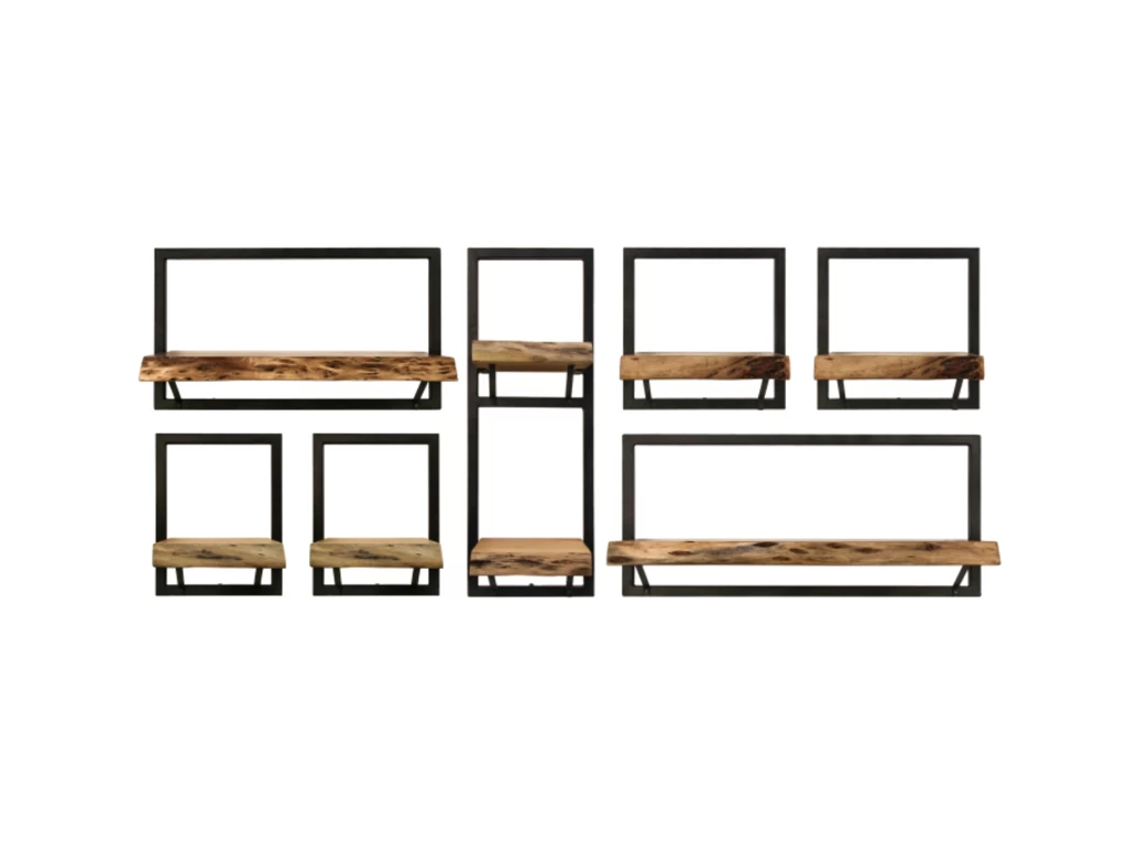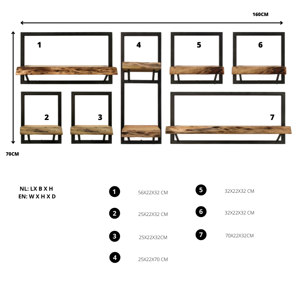 Wandplanken Levels Live Edge – Naturel/zwart – Acacia/ijzer – 160x22x70 Cm