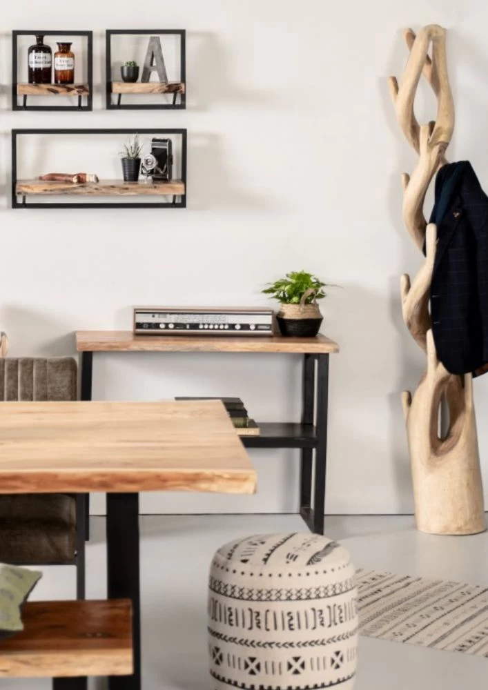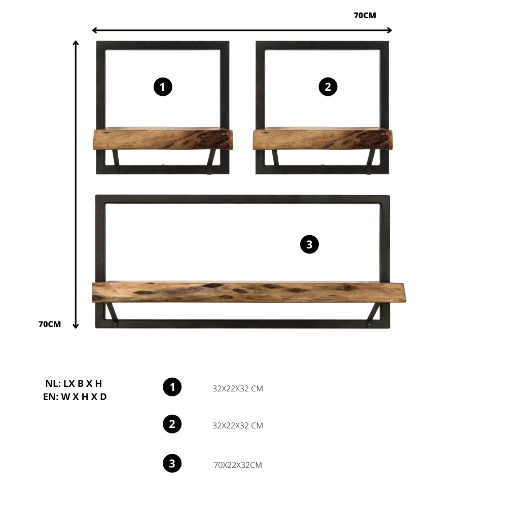 Wandplanken Levels Live Edge – Naturel/zwart – Acacia/ijzer – 70x22x70 Cm