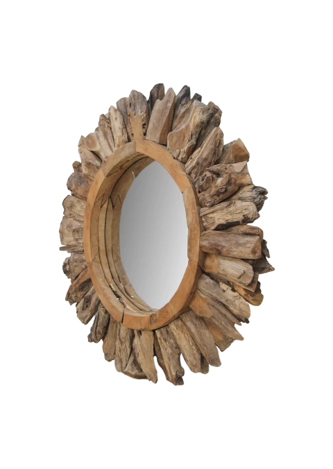 De wandspiegel Sun van HSM Collection is een echte eyecatcher aan de muur. De spiegel heeft een uniek uiterlijk door het bijzondere ontwerp. De spiegel heeft de vorm van een zon en is gemaakt van teak wortelhout. Hierdoor is iedere spiegel volledig
