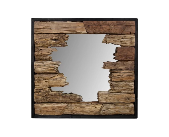 De wandspiegel van De Kisten Koning is een echte blikvanger aan de muur. De spiegel is bijzonder vanwege de unieke houtvormen. In de hal, in de woonkamer of in de slaapkamer, deze spiegel ziet er geweldig uit op elke muur!