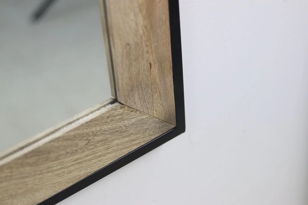 De wandspiegel van De Kisten Koning is een echte blikvanger aan de muur. De spiegel is bijzonder vanwege de unieke houtvormen. In de hal, in de woonkamer of in de slaapkamer, deze spiegel ziet er geweldig uit op elke muur!