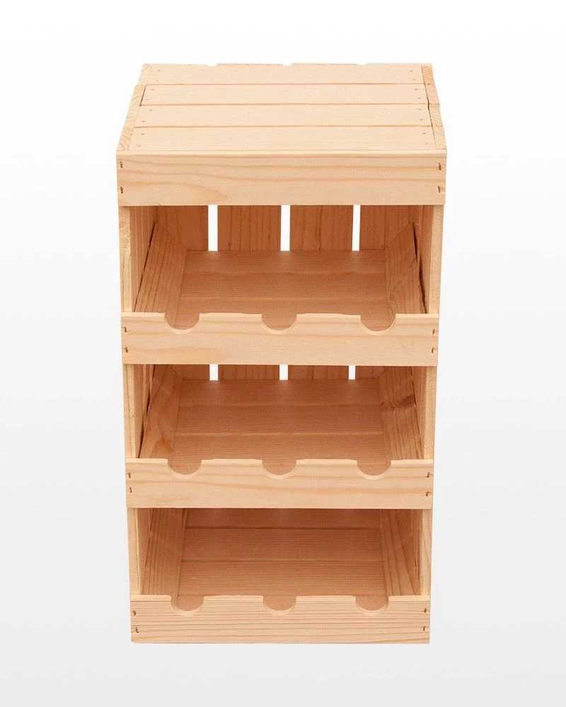 In deze wijnrek passen 9 wijnflessen. Natuurlijk kunt u het ook voor andere doeleinden gebruiken. Bijvoorbeeld als geschenken kist, display kist of natuurlijk leuk te stylen in het interieur.